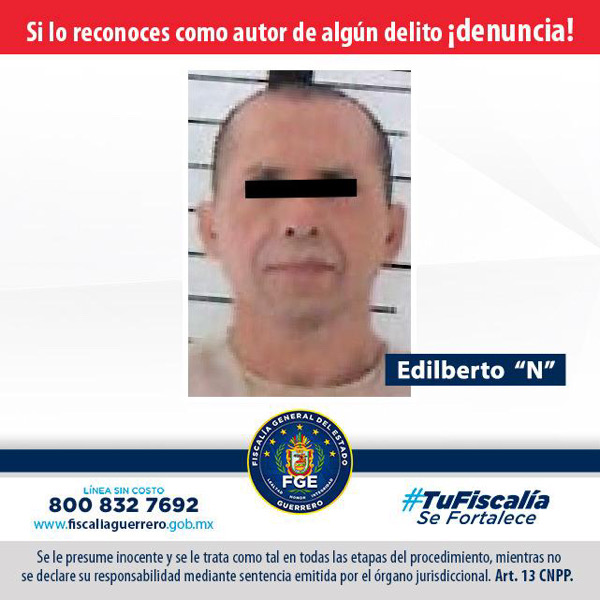 La Fiscalía General del Estado logró del Tribunal de Enjuiciamiento Penal en juicio oral la sentencia de 50 años de prisión en contra de Edilberto “N”, alías El Gavilán, por delito de secuestro y quién es señalado de ser jefe de plaza en el municipio de Petatlán.