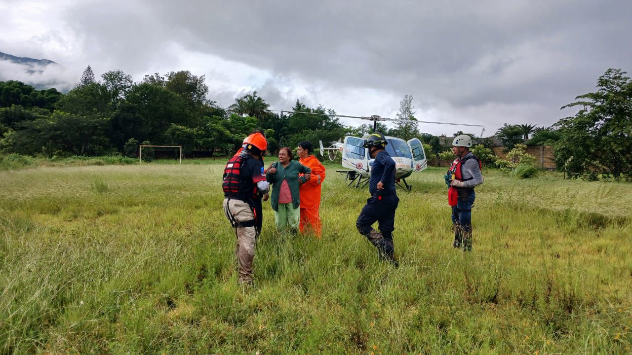 En total se realizaron tres sobrevuelos con el helicóptero propiedad del gobierno del estado, rescatando a una femenina, cuatro varones y una mascota, los cuales fueron trasladados a un refugio temporal para recibir atención.