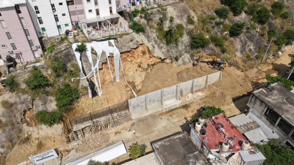 En su intervención, la alcaldesa recordó que esta obra se originó tras los desgajes totales del muro anterior, causados por los huracanes Otis y John, que pusieron en riesgo la integridad de las y los habitantes. Ante esta situación, instruyó integrar la obra al plan de reconstrucción y apoyo a la ciudadanía.