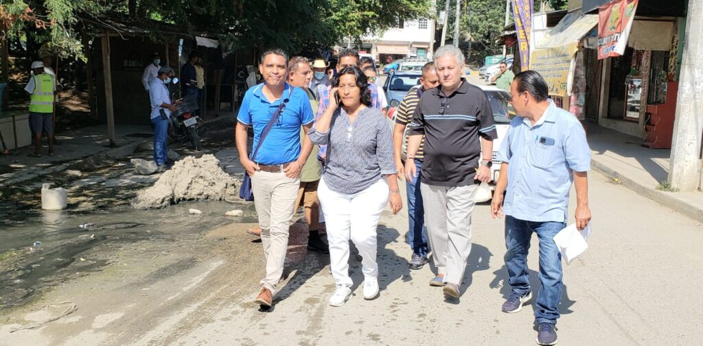 Acapulco, Gro., a 14 de noviembre del 2022.- La presidenta municipal de Acapulco, Abelina López Rodríguez, encabezó junto al cónsul de Orlando, Florida, Juan Sabines Guerrero y empresarios de Red Meters un recorrido de supervisión y evaluación por los colectores de aguas residuales ubicados en la zona de La Venta y Plácido Domingo, mismos que se encuentran colapsados y necesitan ser sustituidos de inmediato ya que representan un foco de infección.