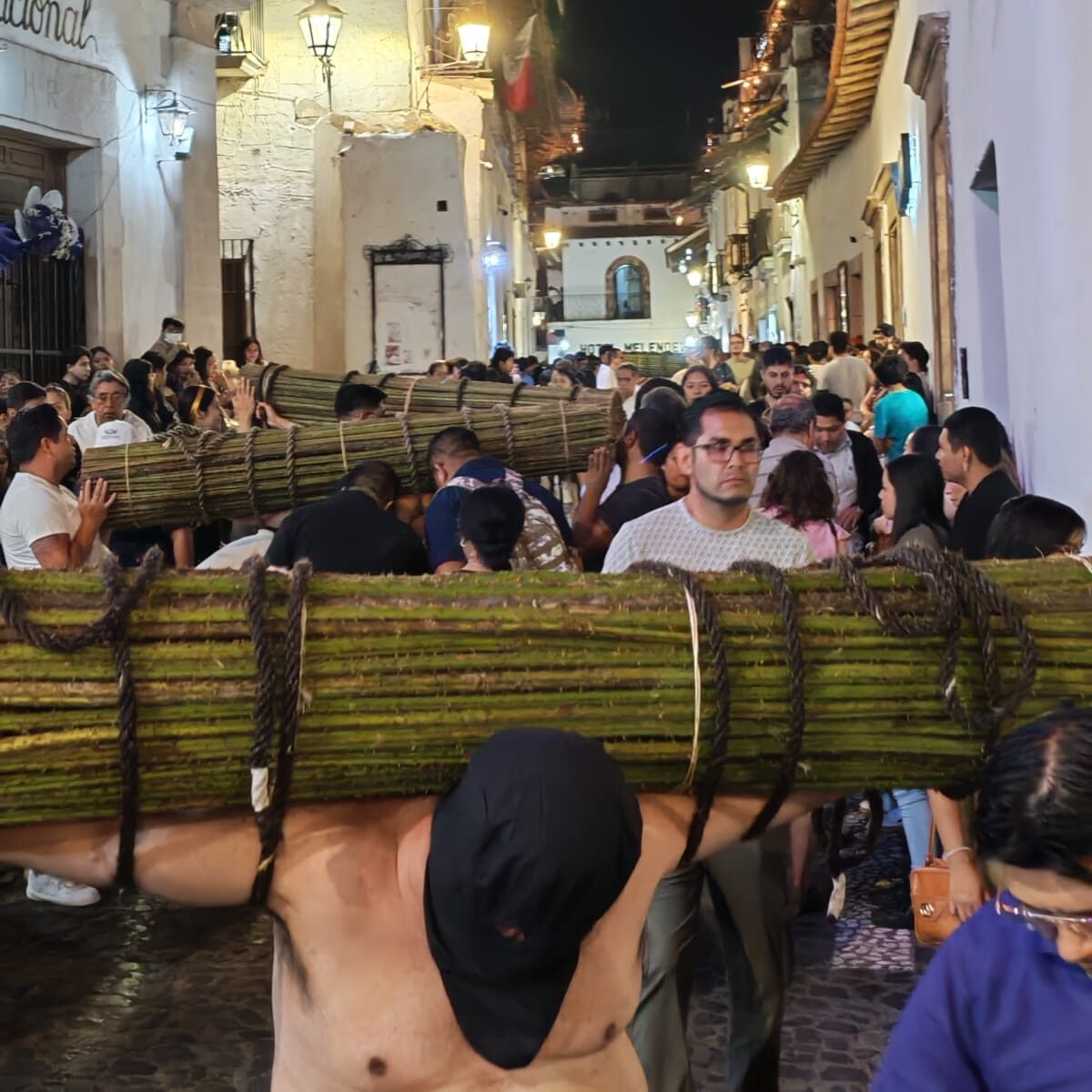 Taxco, Gro., 3 de abril de 2026.- Calles repletas, ambiente solemne y una intensa actividad turística marcaron la noche de este Jueves Santo en el Pueblo Mágico, donde miles de visitantes, tanto nacionales como extranjeros, se congregaron para presenciar las emblemáticas procesiones de encruzados y penitentes.
