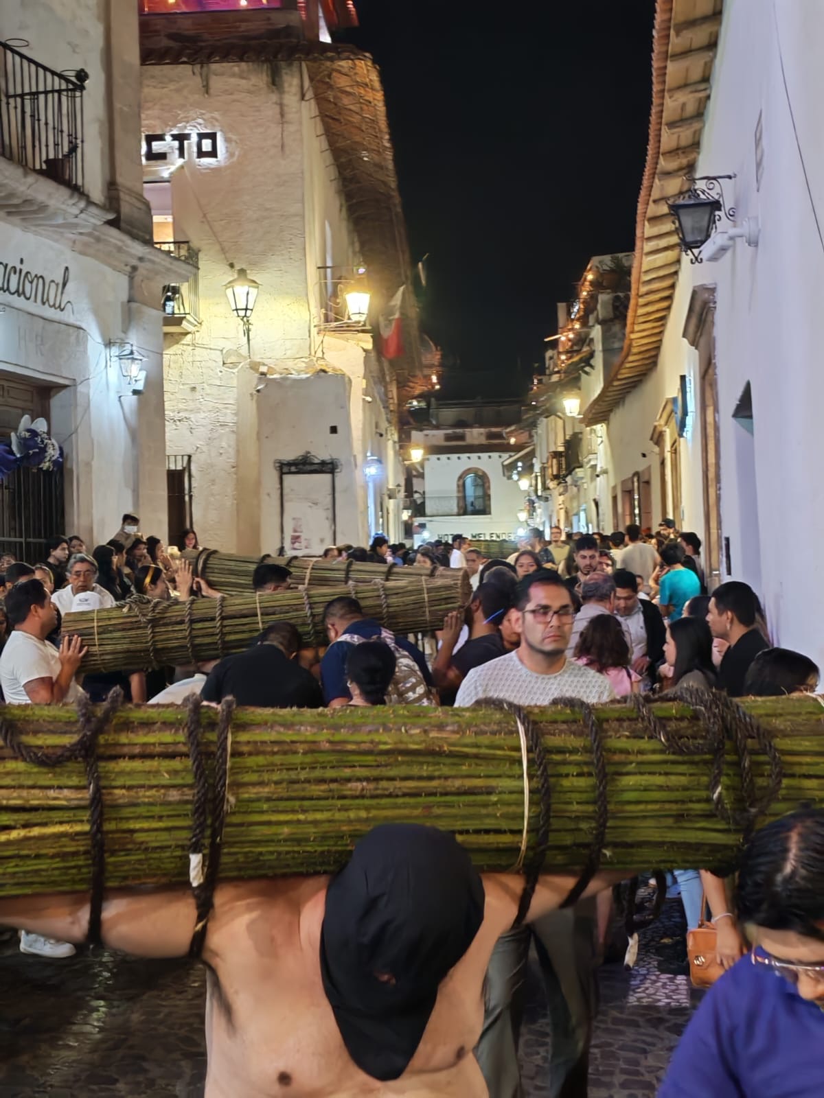Taxco, Gro., 3 de abril de 2026.- Calles repletas, ambiente solemne y una intensa actividad turística marcaron la noche de este Jueves Santo en el Pueblo Mágico, donde miles de visitantes, tanto nacionales como extranjeros, se congregaron para presenciar las emblemáticas procesiones de encruzados y penitentes.
