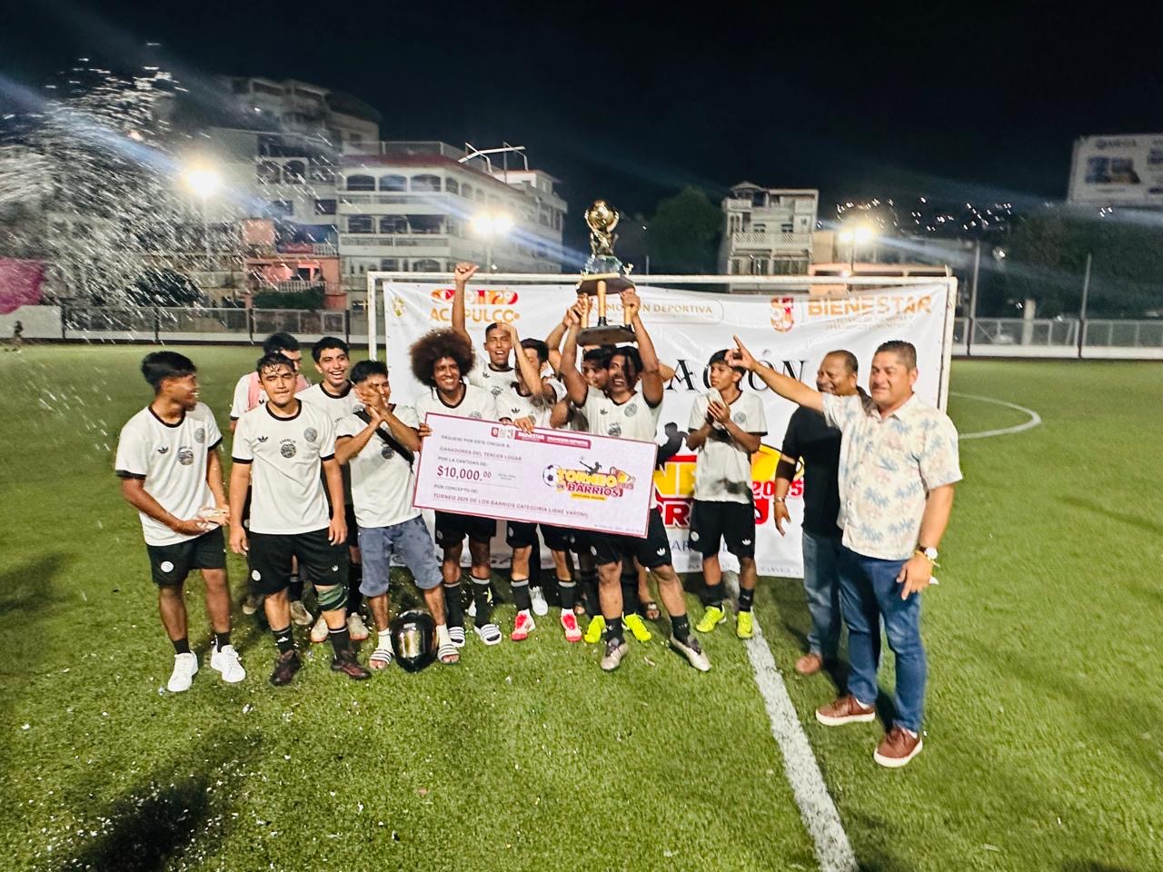 Acapulco, Gro., 24 de julio de 2025.- Con gran entusiasmo, alegría y deportivismo, el Gobierno Municipal que encabeza la presidenta Abelina López Rodríguez, llevó a cabo los encuentros por el tercer lugar del Torneo de Barrios 2025, en las ramas femenil y varonil, teniendo como sede la cancha de la Unidad Deportiva Vicente Suárez.