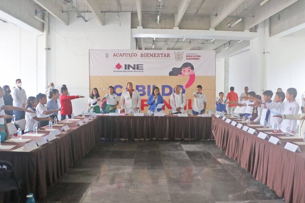 Acapulco, Gro., 24 de octubre de 2022.*- La presidenta municipal, Abelina López Rodríguez, tomó protesta a los integrantes del Cabildo Infantil para el periodo 2022-2023, destacando que dicho ejercicio busca impactar de forma positiva en la vida política de Acapulco y se pretende que los menores logren comprender la importancia de la función pública y la toma de decisiones.