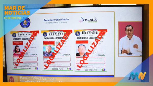 Sobre el avance en materia de procuración de justicia se informó de la localización de seis menores que se encontraban desaparecidas, por lo que se desactivó la alerta Amber que se emitió en su momento; se detuvieron 16 personas por flagrancia o con orden de aprehensión, se recuperaron 8 vehículos y se frustraron dos secuestros virtuales, además de lograr una sentencia condenatoria hasta de 30 años de prisión en contra de una persona que cometió homicidio doloso en Acapulco; Celaya Gamboa puntualizó que se capacitaron a cerca de 500 elementos de la FGE entre policías, peritos, ministerios públicos y personal administrativo como parte del programa permanente de capacitación y actualización de esa dependencia.