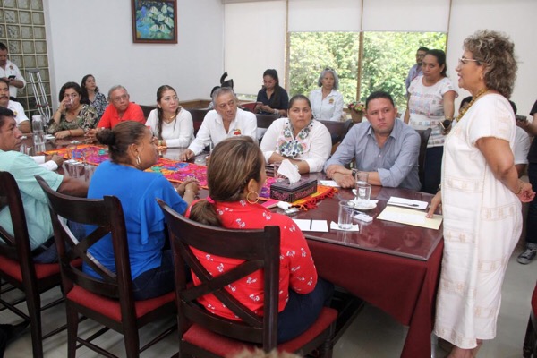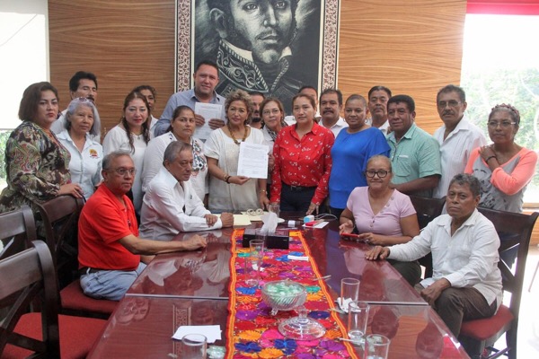 La alcaldesa, junto al secretario general del SUSPEG, David Martínez Mastache, y los secretarios seccionales, Humberto Piza Pérez de la 19, Emma Torres Cárdenas de la 56, Rosalinda Marín Terán de la 24 y Natividad Rodríguez Chino de la 35 sostuvieron una mesa de diálogo, donde expusieron las inquietudes y posibles soluciones en beneficio de la base trabajadora.