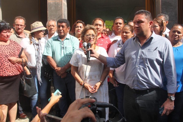 Al finalizar la firma de la minuta, la presidenta municipal junto a los representantes sindicales diálogo directamente con los trabajadores en la explanada del Ayuntamiento donde les informó lo acordado.
