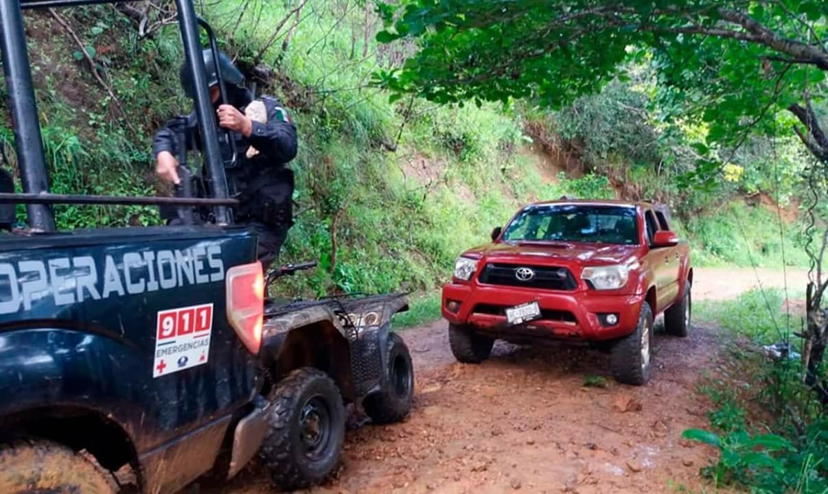 El pasado viernes 28 de septiembre, los Policías Estatales y Militares realizaban un operativo de seguridad y vigilancia a bordo de unidades motrices y pie a tierra en la localidad de La loma, en las inmediaciones del crucero que conduce a El Zapotillal, municipio de Petatlán, cuando visualizaron en una brecha de terracería 4 vehículos: 2 camionetas pick-up, una tipo RAV-4, una Traverse y una cuatrimoto.