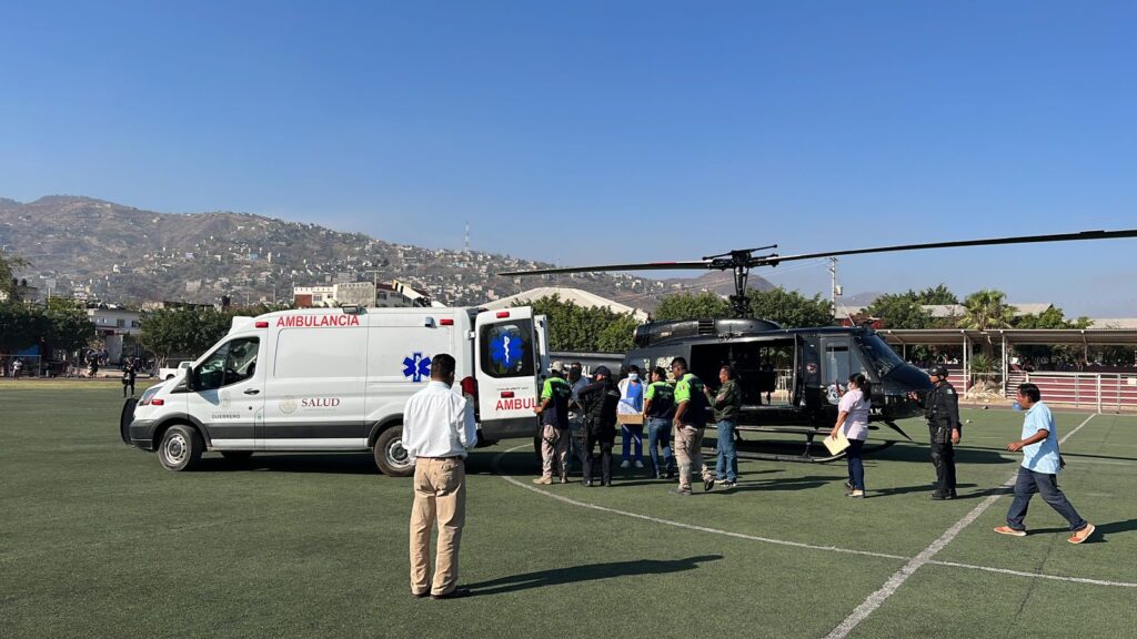 Tlapa de Comonfort, Gro., 27 de febrero del 2023.- Gracias a la oportuna intervención y coordinación entre el Centro Regulador de Urgencias Médicas (CRUM Guerrero) el Hospital General de Tlapa y el Hospital General el Quemado de la Secretaría de Salud Guerrero (SSG), se llevó a cabo traslado aéreo de Tlapa de Comonfort a Acapulco a paciente para recibir atención médica.
