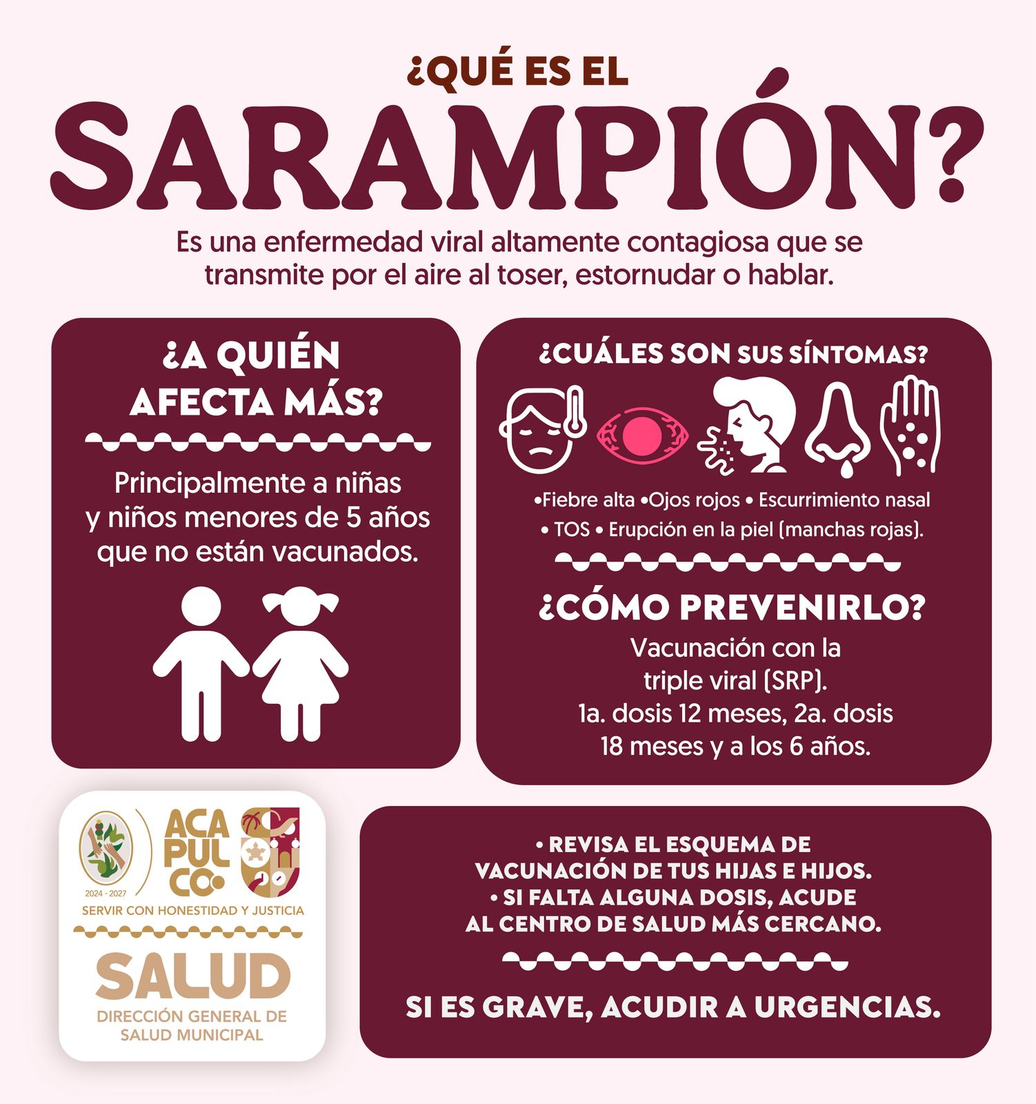Vacunarse es la mejor protección contra el sarampión, indica Salud Acapulco