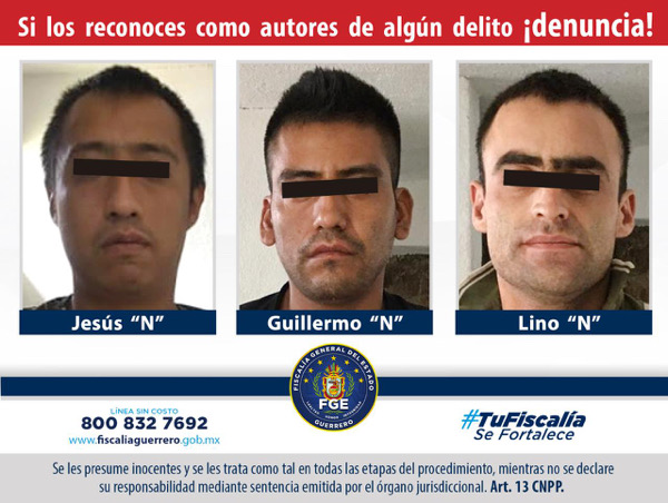 Luego de la detención de Jesús “N”, Lino “N” y Guillermo “N”, la Fiscalía General del Estado logra vinculación a proceso como probables responsables del delito de homicidio calificado al interior de un jaripeo en Huitzuco de los Figueroa, región Norte del estado.